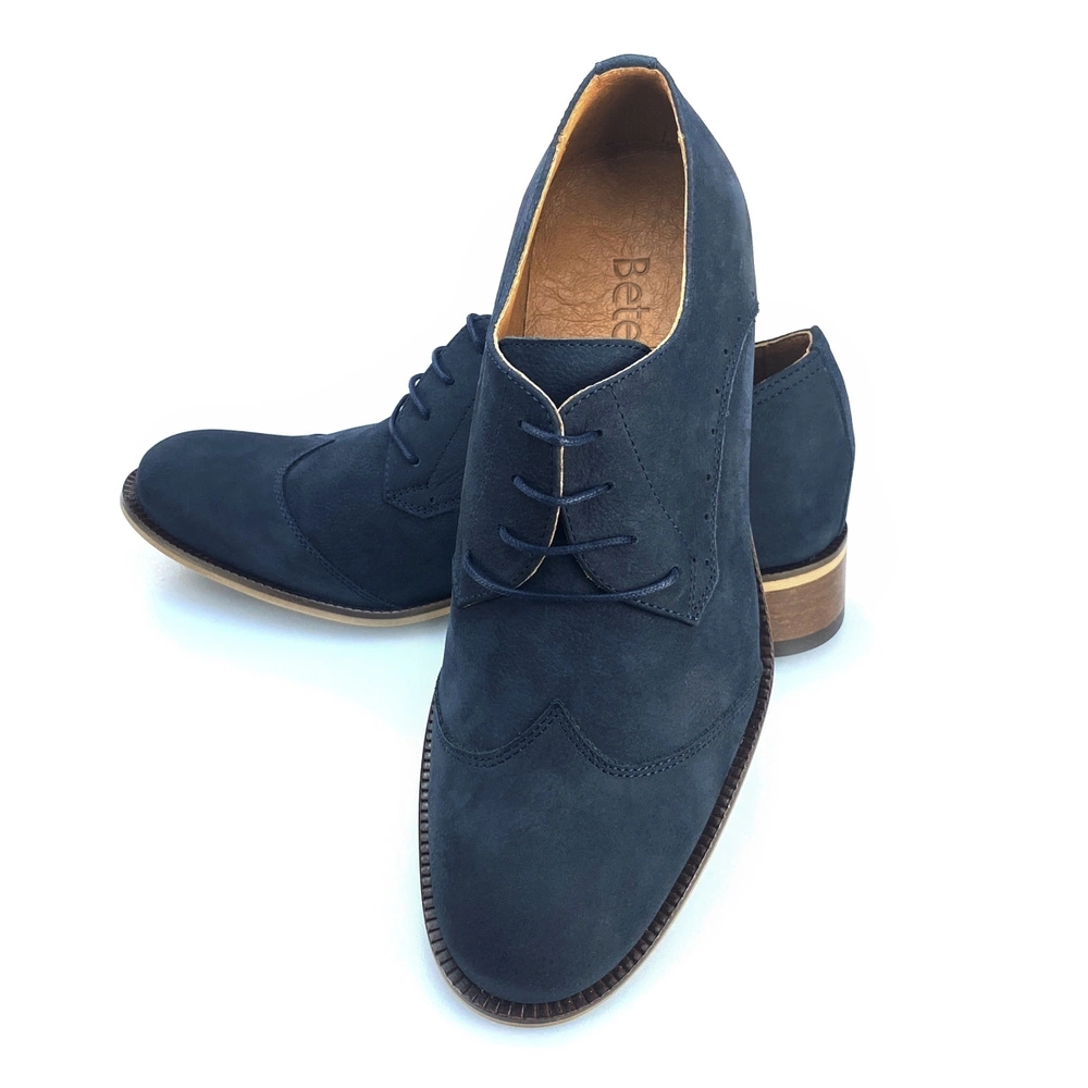 - 7 cm zunehmende Schuhe aus marineblauem Nubuk
