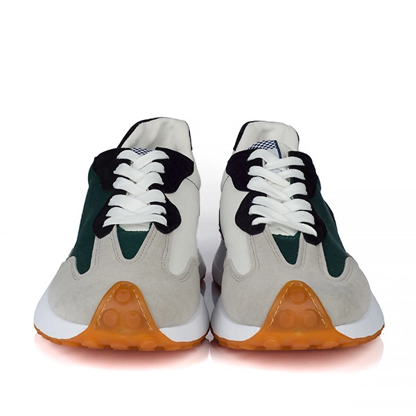 Sportlicher MERANO-Aufstiegsschuh aus grauem Veloursleder und weißem, grünem und schwarzem Textilmaterial