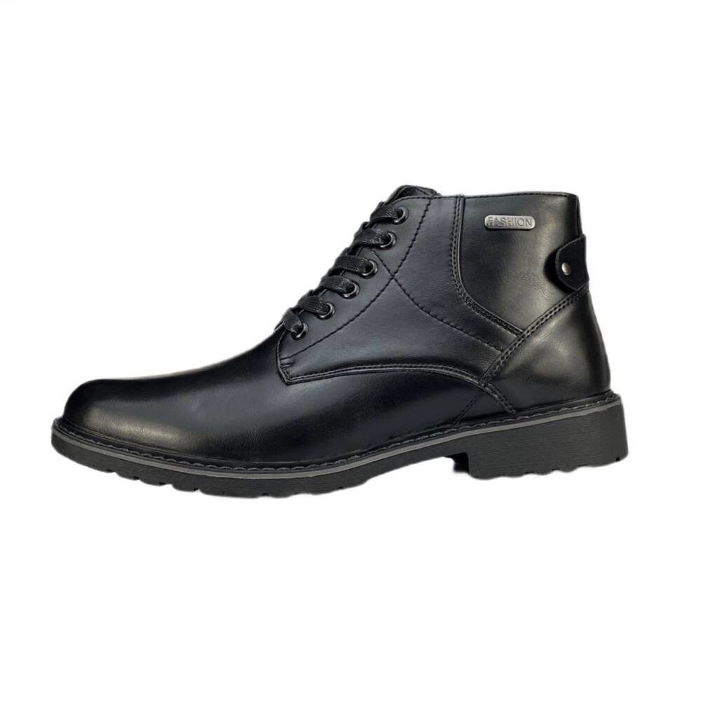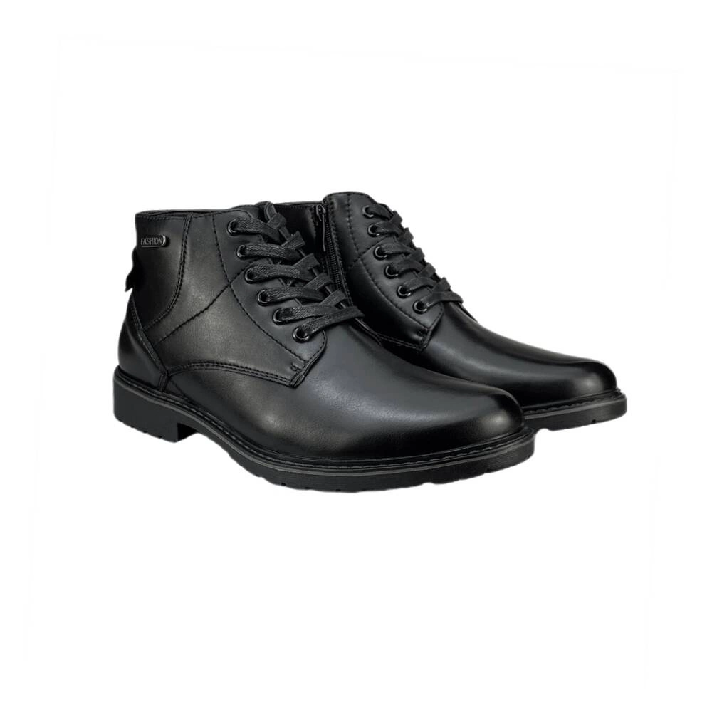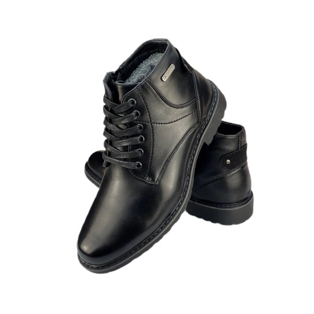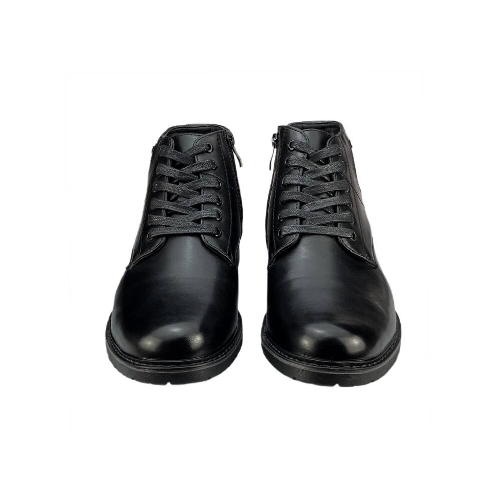Bequeme, erhöhte Schuhe, perfekt für kältere Tage. Elevator-Schuhe für Herren mit Isolierung aus schwarzem Öko-Leder.